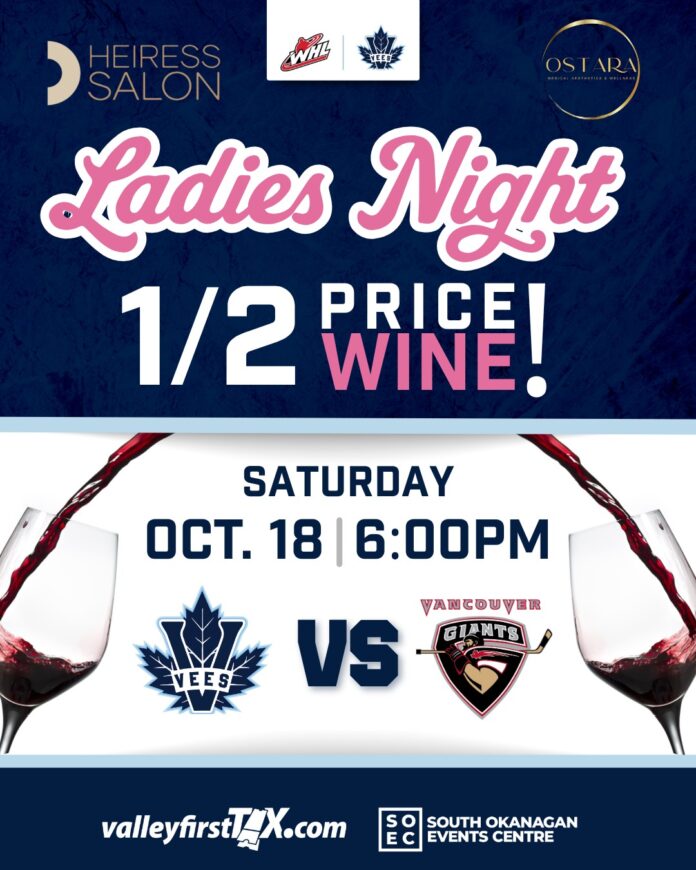 The Penticton Vees today announced Ladies Night on Oct. 18 at the South Okanagan Events Centre when they host the Vancouver Giants at 6:00PM.