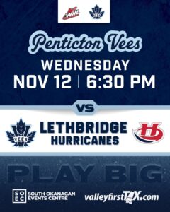 Vees back at it tonight, hosting the Lethbridge Hurricanes, at 6:35 from the South Okanagan Events Centre.