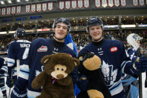 -It was ‘Teddy Bear Toss’ Night at the SOEC, and over 3,600 waited ’til the midway point of period 2 before unleashing all the stuffed teddies on the ice for charity! Brooks DeMarrs was the ‘Teddy Bear’ hero scoring that 1st goal. The Blazers hung in the game and eventually tied it late in the 3rd, before Isa Guram scored the game winner just 41 seconds into the extra frame to give Kamloops the road win.