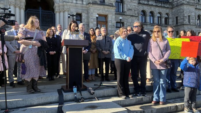 The B.C. Conservatives and some families of children with autism gathered at the legislature Thursday to call on the province to reconsider recent changes to disability funding.