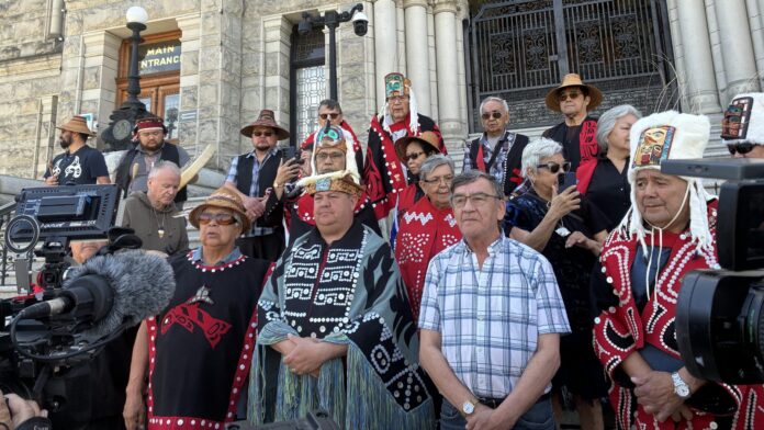 Leaders from the First Nations rallied in front of the legislature on Monday.